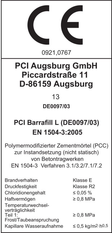 - Schichtdicke bei flächiger Anwendung 1 bis 7 mm.