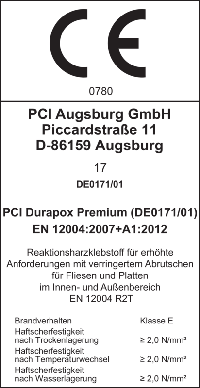 - Geprüft nach DIN EN 12004: PCI Durapox Premium (Multicolor) entspricht R2T.