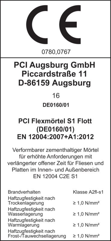 – den Prüfgrundsätzen zur Erteilung eines allgemeinen bauaufsichtlichen Prüfzeugnisses für Verbundabdichtungen in Verbindung mit PCI-Verbundabdichtungen wie z. B. PCI Lastogum, PCI Seccoral 1K, PCI Seccoral 2K Rapid, PCI Apoflex F/W und PCI Pecilastic W. - Entspricht mit PCI Lastoflex der Klassifizierung C2E S2 nach DIN EN 12004 und 12002.