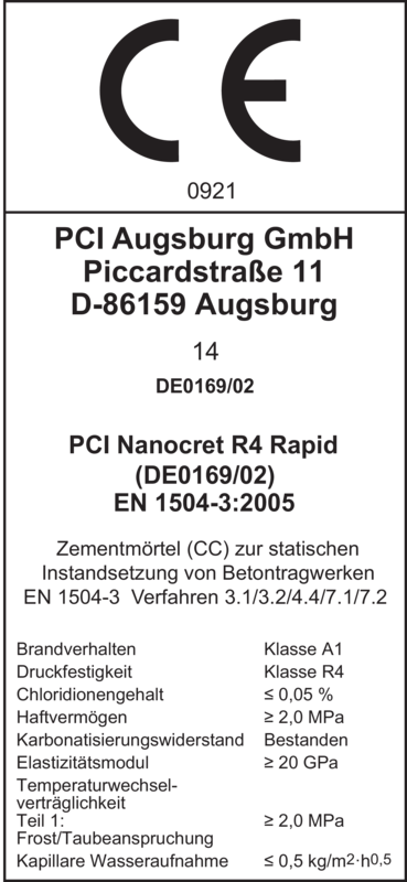 - Geeignet für Expositionsklassen X0, XC1-4, XD1-3, XS1-3, XF1-4 und XA1-2, wie in EN 206 beschrieben.