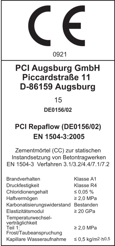 - Entspricht der DAfStb - Richtlinie (VeBMR) “Herstellung und Verwendung von zementgebundenem Vergussbeton und Vergussmörtel”