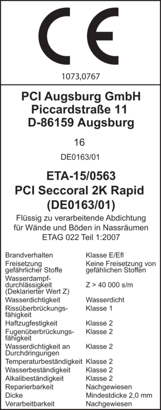 PCI Pericol® Pro, PCI Pericol® Proflex, PCI Pericol® Light, PCI FT® White, PCI Nanolight® , PCI Nanorapid®, PCI Carrament® grau, PCI Uniferm®, PCI Durapox® Premium, PCI Flexmörtel® S1 Flott, PCI Flexmörtel® S1 Rapid, PCI Pecitape® Bond, PCI Flexmörtel® S1, PCI Flexmörtel® S2, PCI Seccoral® 2K Rapid, PCI FT® Rapid, PCI Pecitape® 42,5 x 42,5, PCI Pecilastic® U, PCI FT® Extra, PCI Durapox® NT, PCI Pecitape® 90° I, PCI Pecitape® 90° A, PCI Pecitape® 250, PCI Pecitape® 120, PCI Seccoral® 1K, PCI Apoflex® W