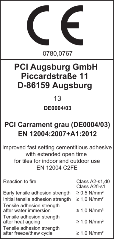 - PCI Carrament meets the requirements of C2FE in accordance with DIN EN 12004.