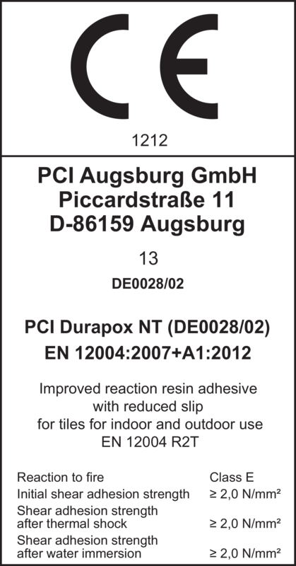 - Tested in accordance with DIN EN 12 004: PCI Durapox NT and PCI Durapox NT plus meet the requirements of R2T.